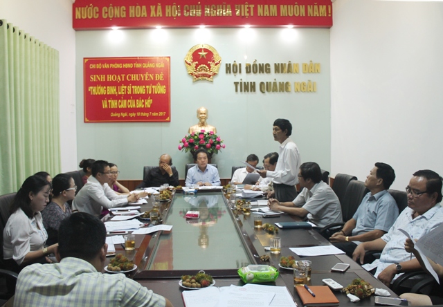 Tại buổi sinh hoạt, Chi ủy Chi bộ nêu mục đích, yêu cầu, nội dung sinh hoạt chuyên đề; báo cáo đánh giá kết quả thực hiện nhiệm vụ của Chi bộ, đăng ký làm theo tư tưởng, đạo đức, phong cách Hồ Chí Minh thời gian qua, việc thực hiện kế hoạch của cơ quan về tổ chức các hoạt động kỷ niệm Ngày Thương binh Liệt sỹ.